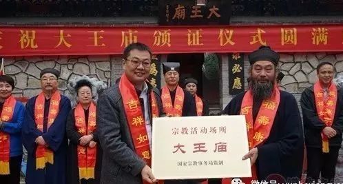 活动现场,丰台区区委统战部副部长民宗办主任马士有向大王庙任崇亮道长颁发场所证书,北京市宗教局副局长刘先传向大王庙授牌,最后,任崇亮道长致谢辞,感谢政府、领导以及善信对于大王庙的支持。