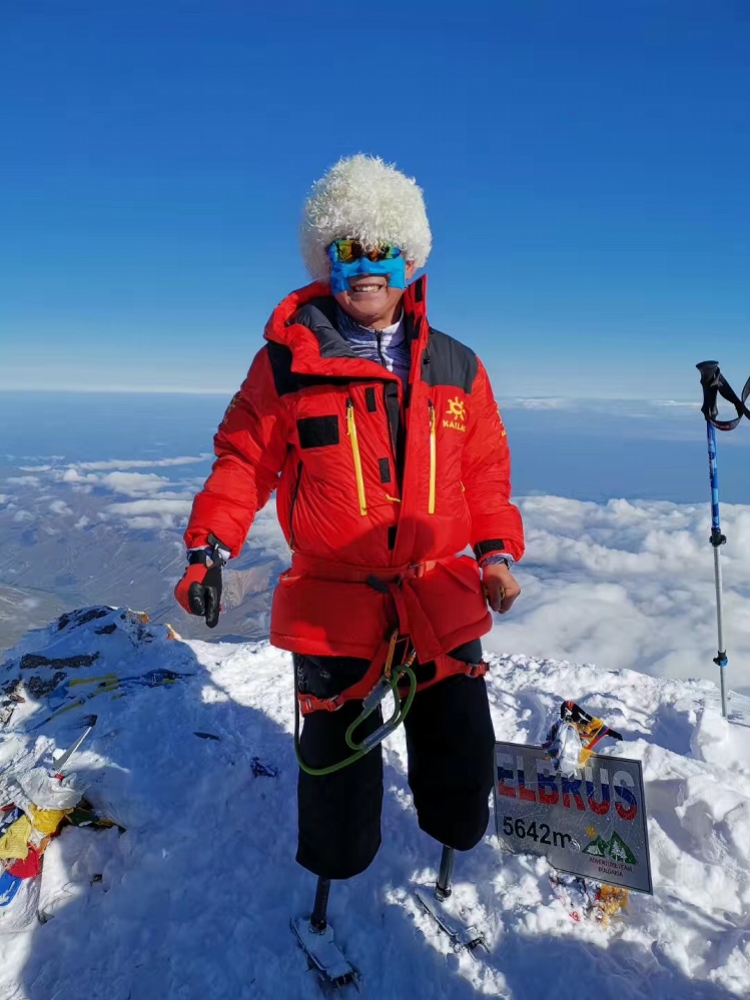 今年8月,他已成功登上欧洲最高峰厄尔布鲁士峰,并将中国国旗带到顶峰。 12月,他将出发攀登南美洲阿空加瓜峰。