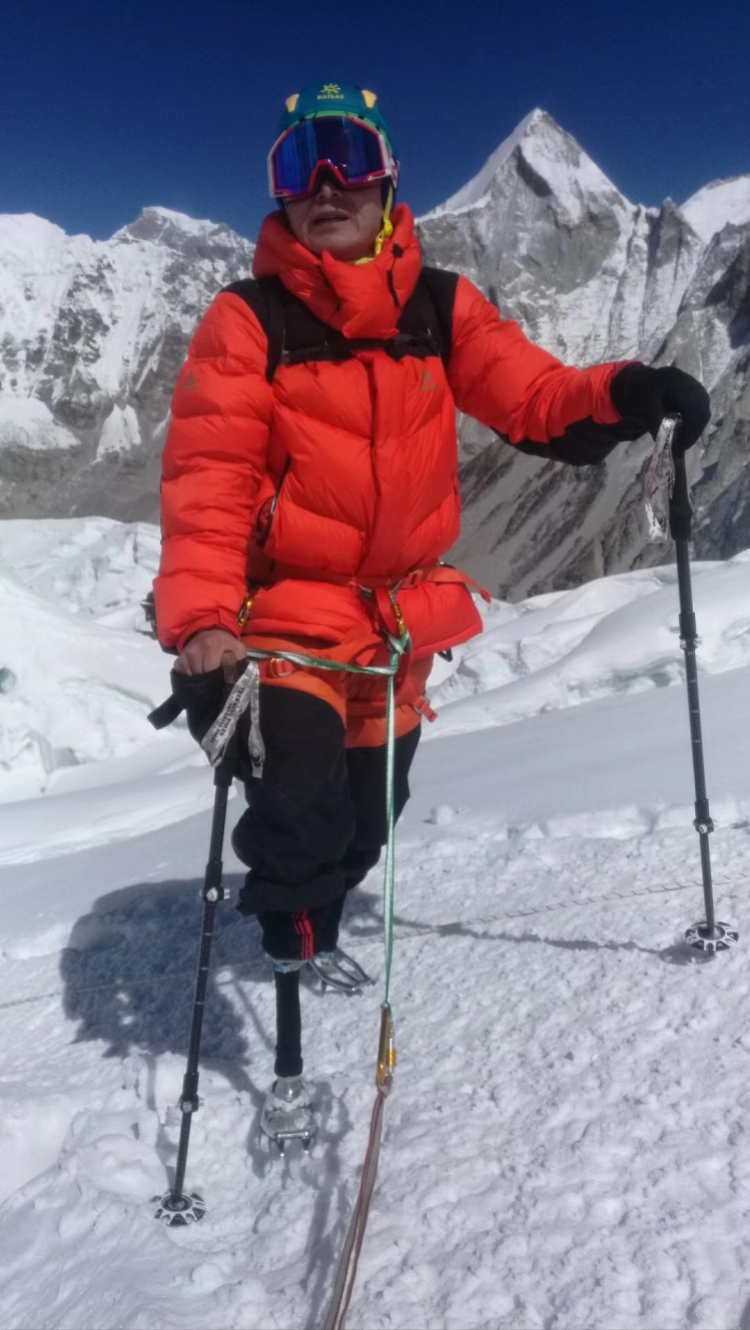 2018年5月14号8点31分(尼泊尔时间),夏伯渝终于站在梦想了43年的珠峰8848米顶峰。他也因此成为中国年龄最大也是第一个依靠双腿假肢登顶珠峰的人。