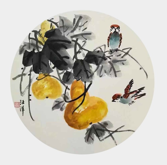曾有弟子问齐白石,画画,不研工笔,直接写意行不行?齐白石断然否定,说不可以。因为写意之法是工笔精湛之后的形态脱略,写意如果没有工笔为底色,那么必然是技成欺世,法成欺人的江湖派。所以齐白石的丹青进阶,早年精心临习的芥子园画谱数遍,得工笔真法,才渡以写意神奇。汪洋先生与先贤能家的艺术取成路径基本一致,根由工笔的笔墨精绝,脱略其形,写意花鸟自然就是水到渠成,技不欺世,法不欺人。