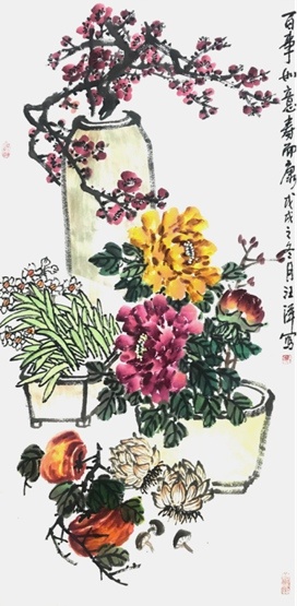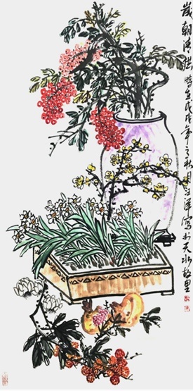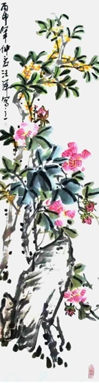 能工善写重意趣,气韵生动法高门。他的写意创作,一改写意花鸟多小品,仅供案头把玩的小气量,凭借技法超然的真实力,写意尺幅制作的大气派,把花鸟的诸多题材,经过现代审美结构法则的新组合,结构出意象和更加丰富的观赏影像,画面不单一,也不单薄,经久耐看,看而无尽,内容非常充实。笔墨铺陈,则相当弘劲,笔行淋漓,彩赋泼辣,创作了一大批带着时代新风却不失传统法度的经典。这些写意作品,可以作为花鸟传承与新创的例证,综合成册,就是花鸟的新画谱。功有画谱成就,必是大家风范!