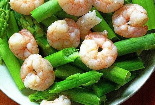 【材料】虾仁100克,芦笋200克,盐、香油各少许。
