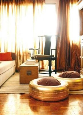 把你的垃圾变成金子!把那些旧轮胎变成这些金色的坐垫凳。异国情调,令人兴奋和震撼!清洁轮胎,用金喷漆,然后在中间的空心处插入垫子。简单,完成。