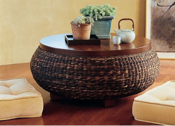 质朴,壮观而优雅–可以完美地与现代,质朴和现代的室内装饰融为一体。这款价格昂贵的中心桌是旧轮胎,上面覆盖有剑麻绳,上面铺有木质材料,并涂了清漆以发光。中央凹坑也可用于存放。