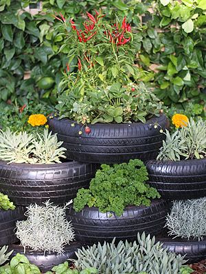 将您的旧轮胎堆放到这个古怪的分层轮胎药草园中。清理轮胎,使轮胎看起来更光滑,根据需要堆放轮胎,填满土壤,然后种植!这个想法也将适用于花园金字塔。