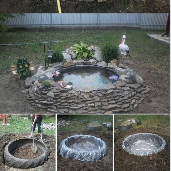 将旧的大轮胎变成这个令人惊叹的花园池塘!您只需要一个免费的周末,大轮胎,岩石,塑料布和水!添加地精,小雕像和诱人的植物,以创建自己的绚丽花园池塘。