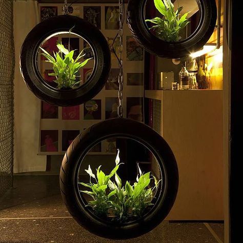 对于较小的二手轮胎,另一个伟大的再利用想法!这些悬挂式轮胎种植机项目非常适合周末以及喜欢园艺的人们。这些可用作室外区域的创意屏风墙或带有室内植物的房间隔板。