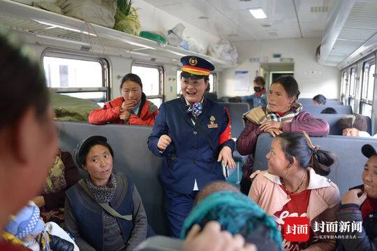 为了方便旅客存放农产品、建材等物资,阿西阿呷和工作人员专门腾出了几节车厢;遇到赶集时间,每到一站,她都会下车到行李车门口,帮老乡往车上搬运到集市上售卖的水果、特产山货。