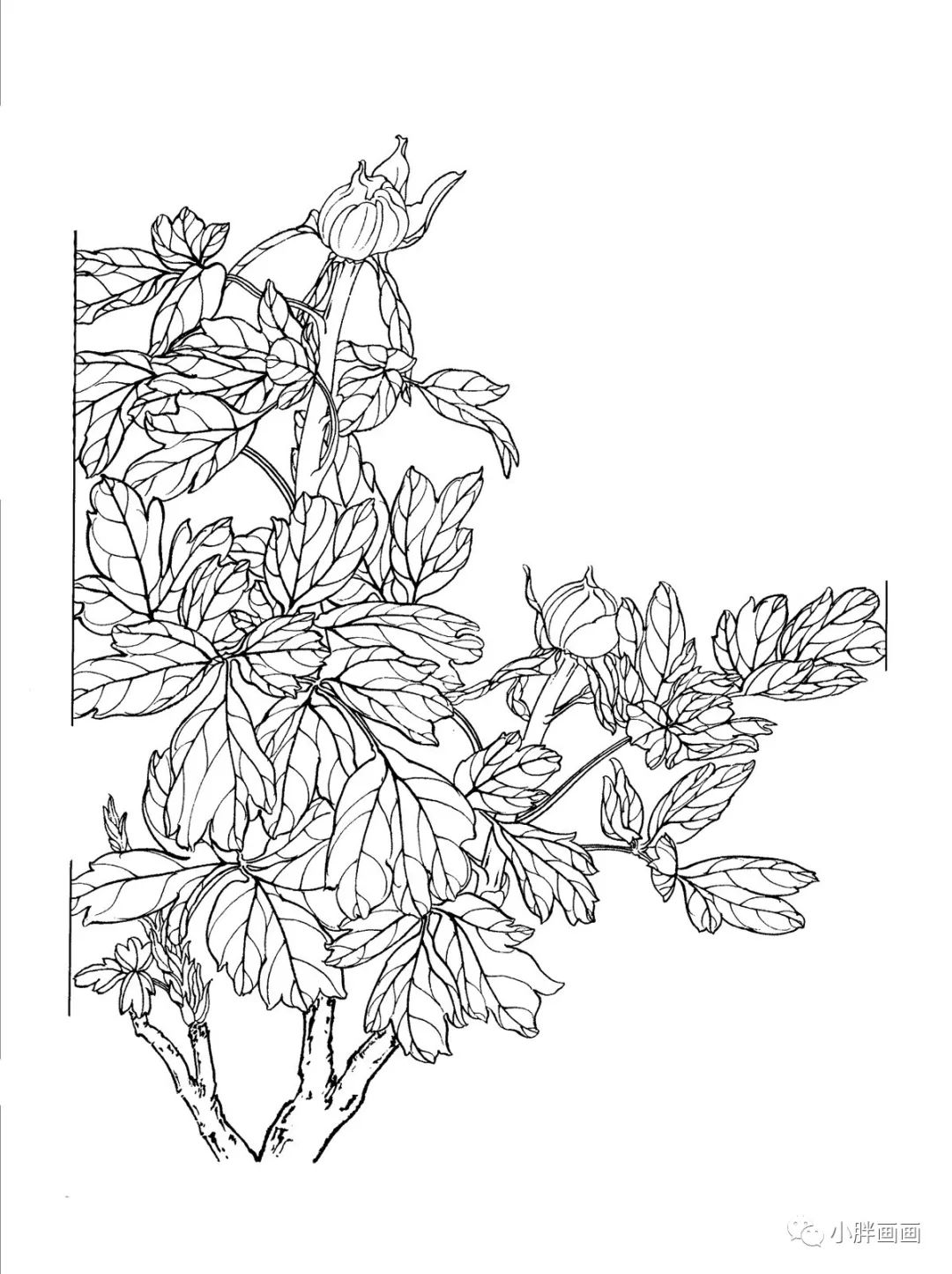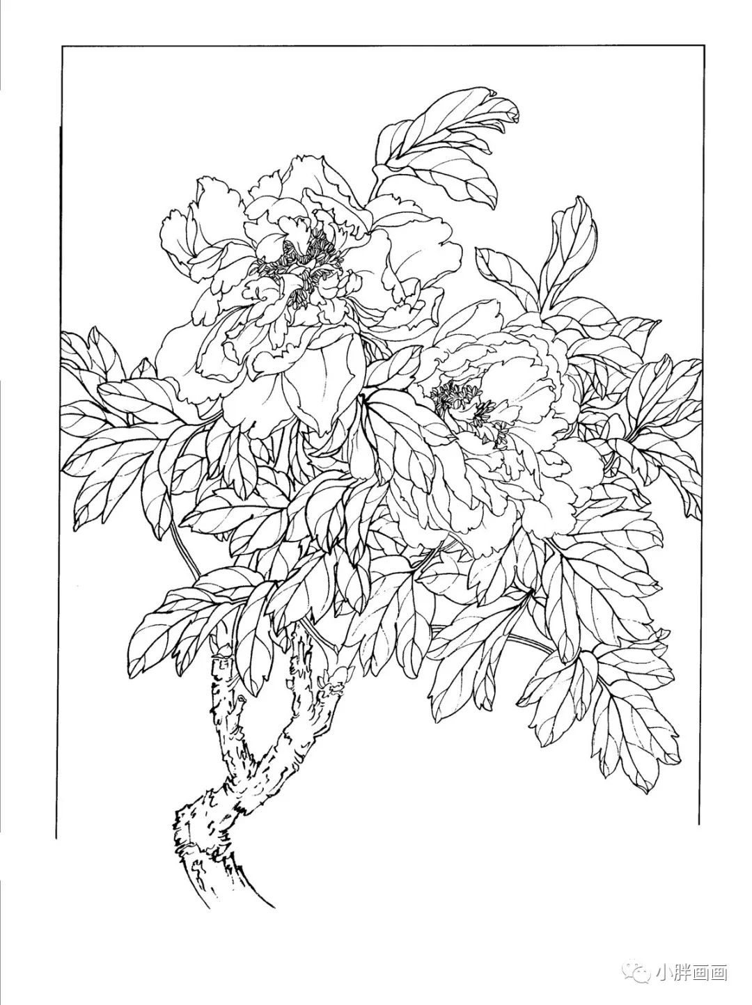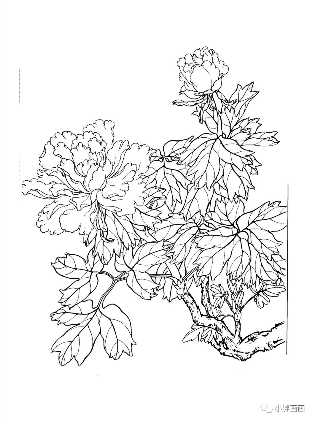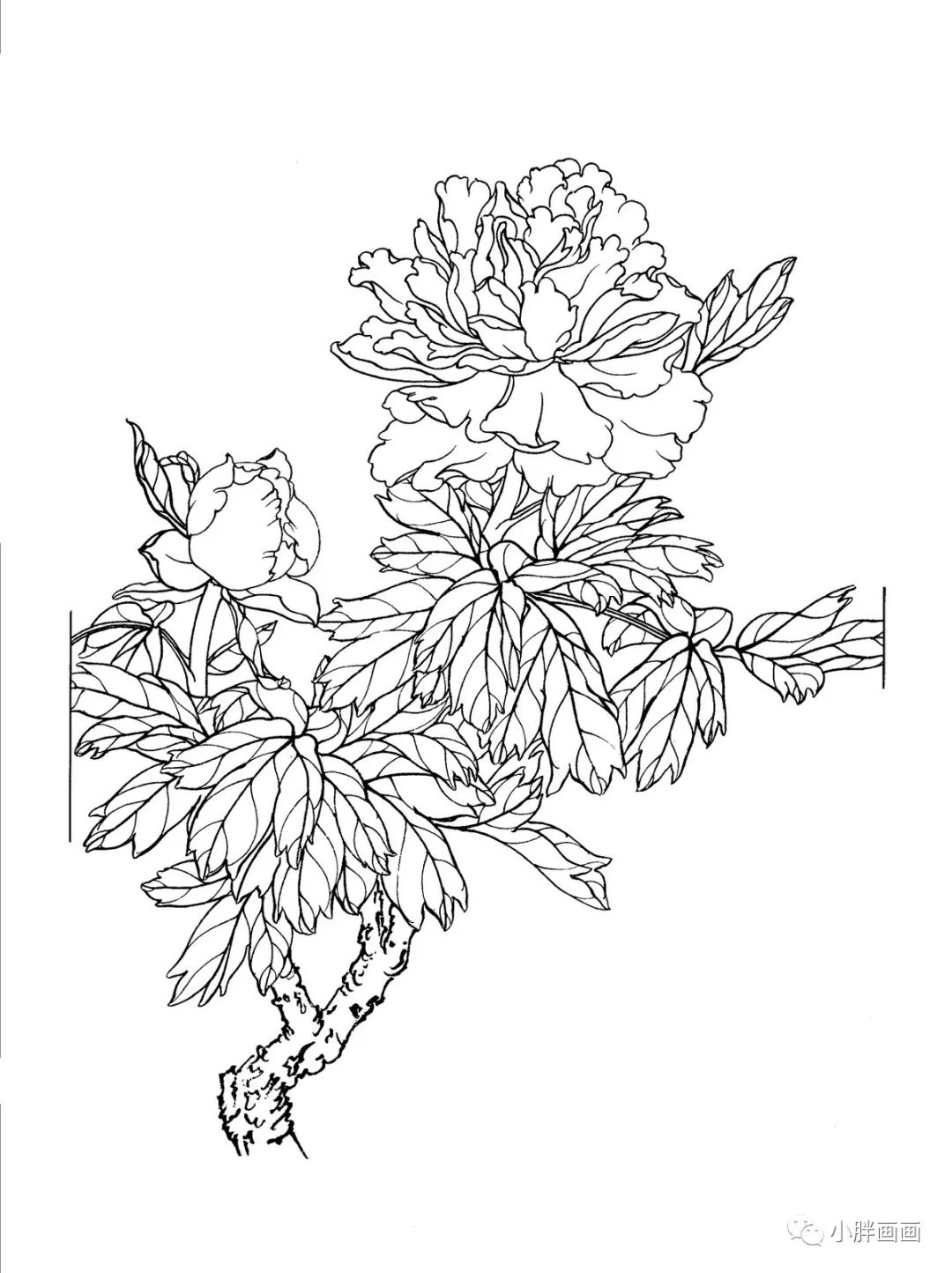 牡丹白描工笔画第1幅