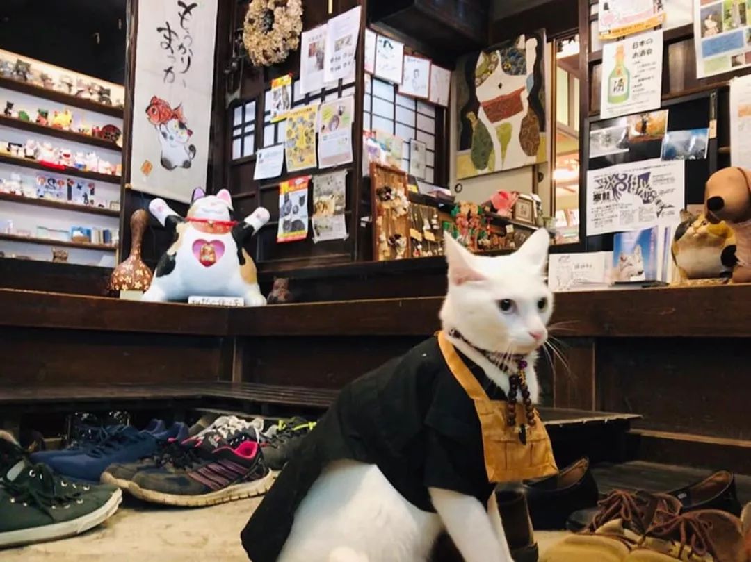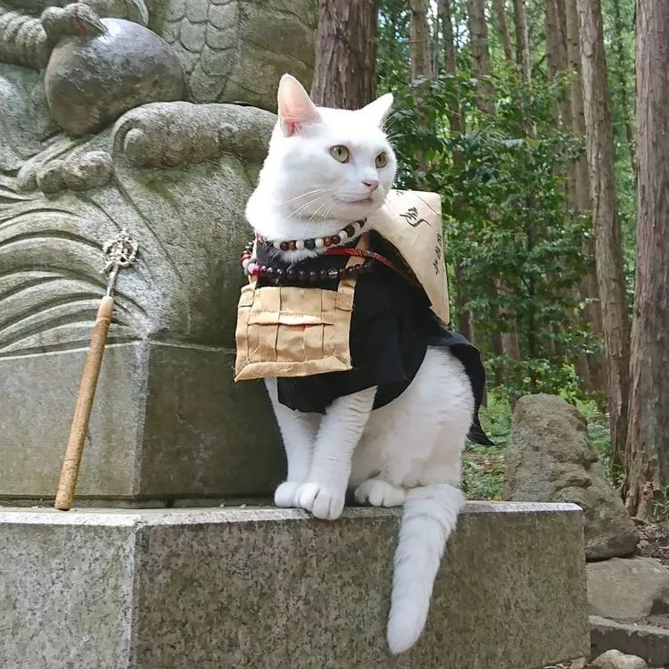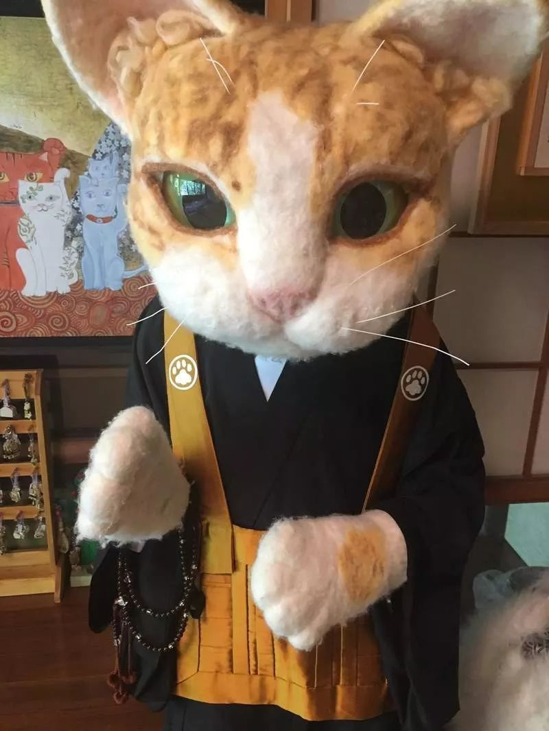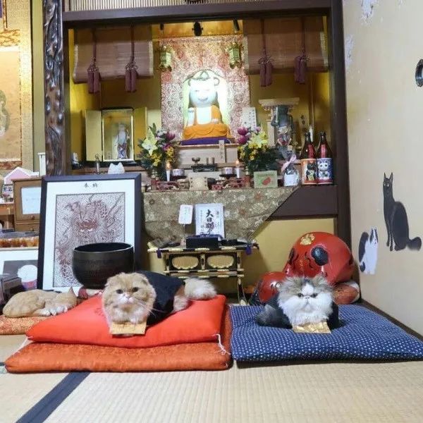 还有穿着住持衣服的猫咪会迎接各方来客,猫住持只此一家哦!