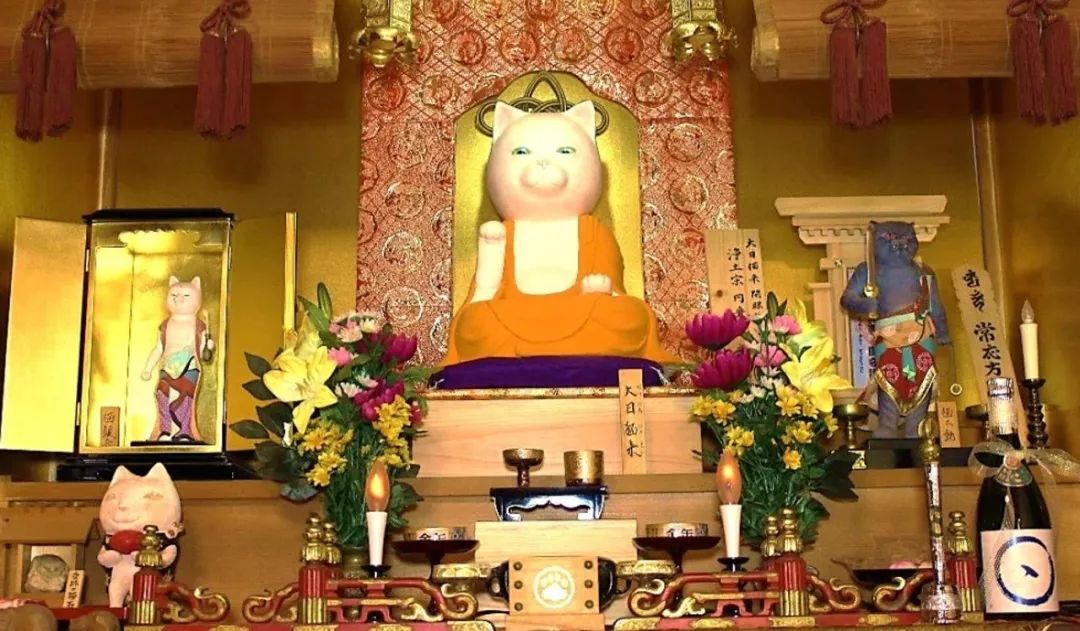 因此它就被亲切地叫做了「猫猫寺」,而寺内寺外都有很多特色的猫咪摆件,让人印象最深的是一尊「大日猫来像」,猫奴看到简直要被可爱跪!