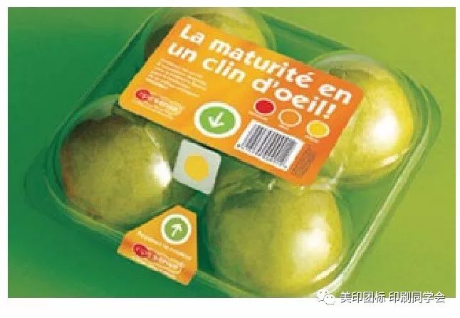 乙烯又称为植物内源激素,广泛存在于植物的各种组织和器官中,它是由蛋氨酸在供氧充足的条件下转化而成的。水果在自然成熟的过程中会释放出乙烯,因此,乙烯在某种程度上可以反映出水果的成熟度。已经在市场上取得成功应用的Ripe Sence®技术是乙烯敏感型新鲜度指示剂, Ripe Sense®标签可通过检测水果果实成熟后所产生的特征气体来判断其成熟度。当果实坚硬而不成熟度时, 标签会呈现出原始的红色;当水果完全成熟时, 标签就会由红色变成黄色, 提醒消费者水果已经达到食用的最佳时间。目前, 该新鲜度指示智能包装已经应用于猕猴桃、甜瓜、芒果和梨等水果的包装上。