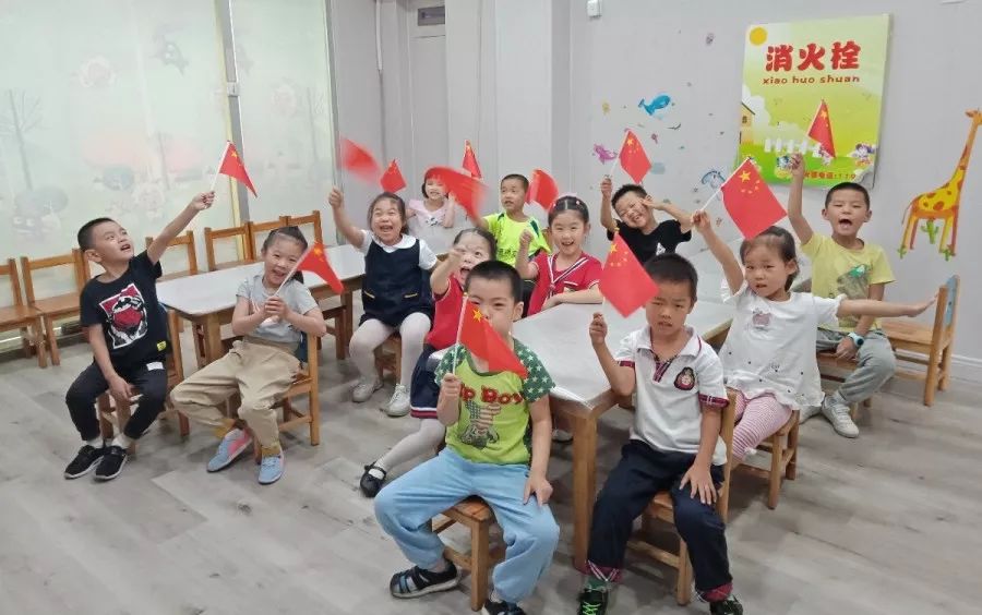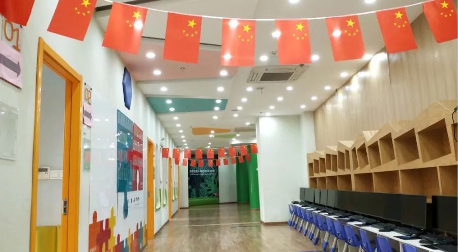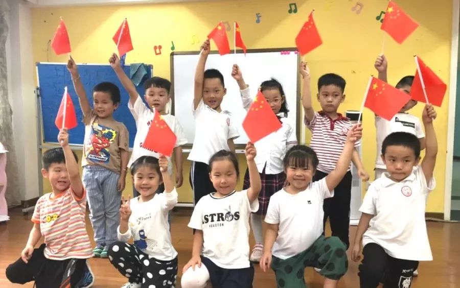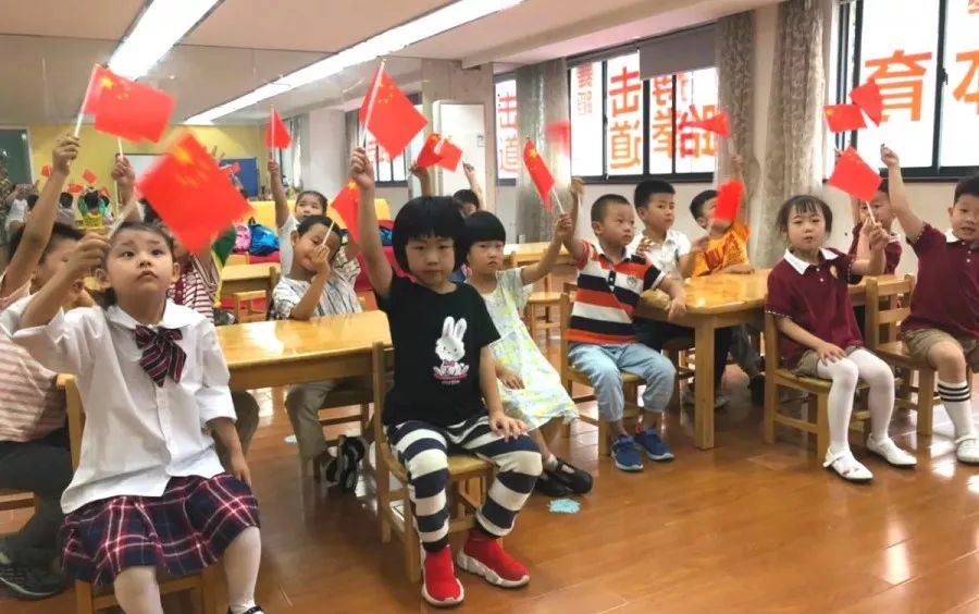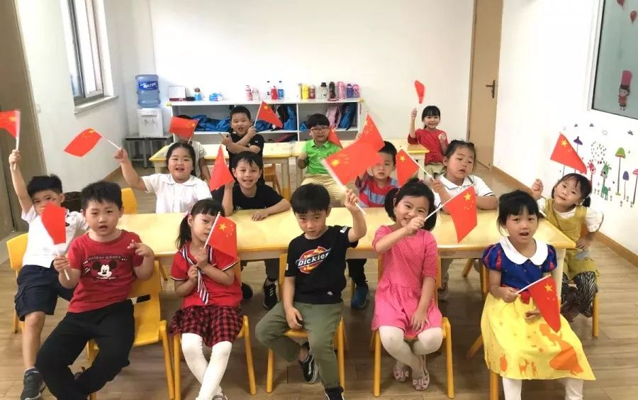 同样,为了营造节庆氛围,让孩子们自如地表达爱国情感。贝佳尔各校区也都挂上了国旗,并给每一个孩子分发了小国旗。