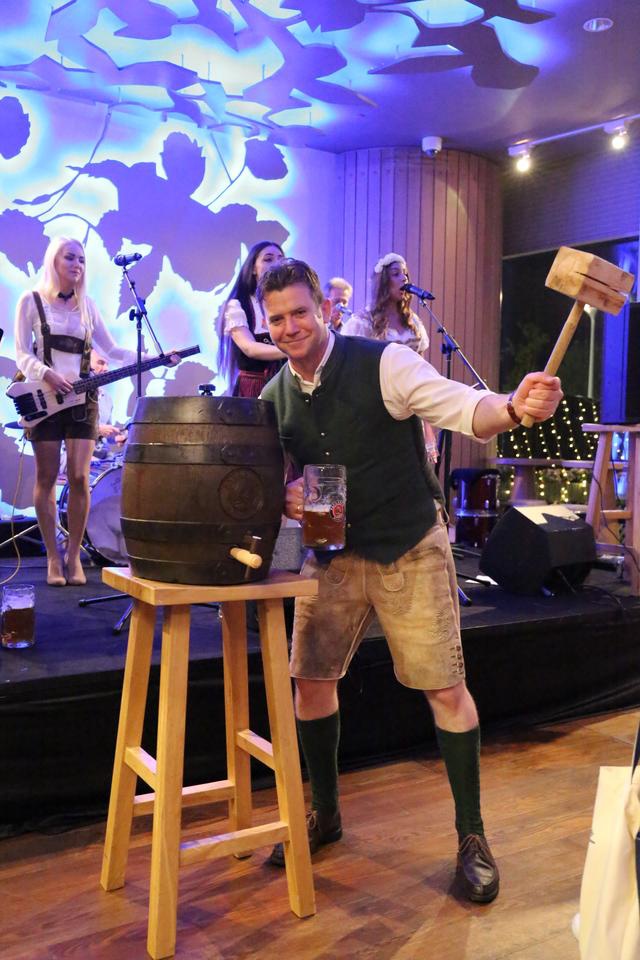 啤酒节期间,来自德国的Alpin巴伐利亚乐队将每天带来精彩的现场表演,更会邀请在场宾客共同参与舞蹈和游戏,喝啤酒比赛、女士速饮比赛、吃香肠比赛等多项有趣的互动游戏,将啤酒节的欢乐气氛传递给每一位现场宾客。客人亦可选择普拉那啤酒坊的室外露天花园,与亲友畅饮的同时,欣赏燕山山脉的秀美景色,感受雁栖湖畔的沁爽清新。按照节日传统,啤酒节开幕之夜第一桶啤酒的开启尤为重要。2019年10月1日晚,在宾客的见证下,北京日出东方凯宾斯基酒店及雁栖岛总经理罗文德先生将和普拉那的酿酒大师Wolfgang Sesser (沃尔夫冈塞瑟)先生一起共同挥动木锤敲开啤酒桶,大声宣布“O’ zapft is”(德语:“它被敲开了”),以表示啤酒节的开幕。