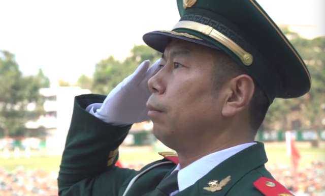 距离国庆还有不到一周的时间,河南新密市穗华心爱国主义教育基地正在举办一场特殊的升旗仪式。操场上肃穆站立的,都是来这里参加军训的学生。让他们鸦雀无声的,是从他们队列前,正步走过的这些国旗护卫队员。他们在退伍前,大部分都是天安门国旗班的老兵。新中国70周年盛典在即,老战友正在阅兵村参与训练接受检阅的方阵。而牛建波和战友们却穿起这身旧军装,为在校学生展示升旗礼仪,然后上台宣讲国旗知识。从国旗班退伍20年,牛建波和战友们始终难忘那支担负光荣使命的部队。