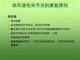 2,熟悉病情分别对待,由于该疾病的关节畸形多变,而且常合并其他病变,因此没有一定的康复模式,故进行康复运动时要熟悉患者的病情,亦根据不同的情况分别对待,如病情较轻,经内科治疗可以完全恢复者是一般健身性运动疗法的对象,病情迁延,炎症反复发作,有进行性关节功能障碍者是康复运动疗法的主要对象,急性期疼痛剧烈症状明显或病情已届晚期病损畸形已经形成者,则适宜于床上进行局部适量训练。