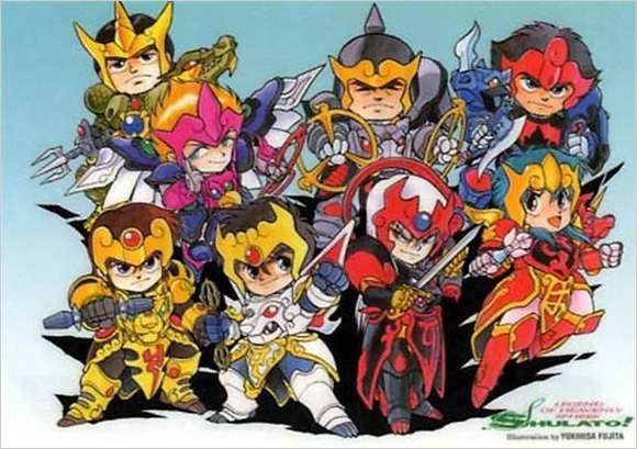 而魔神坛斗士则是使用日本战国时期相似的战甲来设计造型更为写实和厚重,铠甲造型基本相同,靠着不同的颜色和武器上的不同对应着“仁、义、礼、智、信、忠、孝、悌、忍”九种人类精神,但这种基本一致的造型其高识别度的设计让人一看到就记住了这部作品的最大特点。