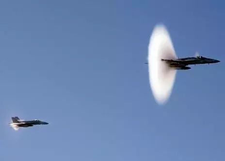 当这种爆震波传到时,我们就听到所有累积起来的声音,在听觉上,这就是一声轰然巨响的音爆。在这一瞬间,整个世界都安静了,一切声音全被抛在了身后!