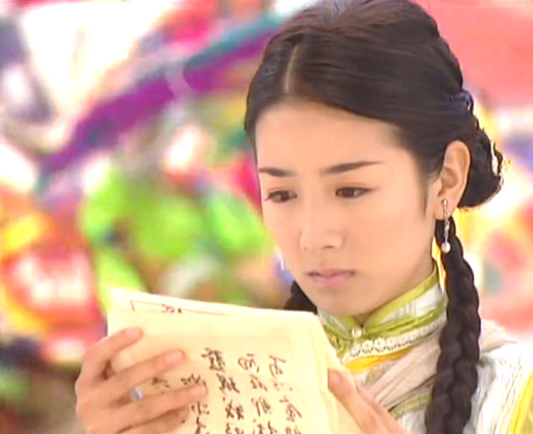 《卧虎藏龙》中黄奕扮演俞秀莲,是镖局千金,一次在她出远门回家后,却发现家里发生了很多奇怪的事,她还没有搞清事情的来龙去脉,就被父亲赶出去送镖,结果走在半路上她发现了父亲写给她的绝笔信,等她回到家的时候却发现家人全都死了,而她的身边也危机重重。俞秀莲是个干练的侠女,扮相非常小清新,两根马尾辫更显清纯气质。