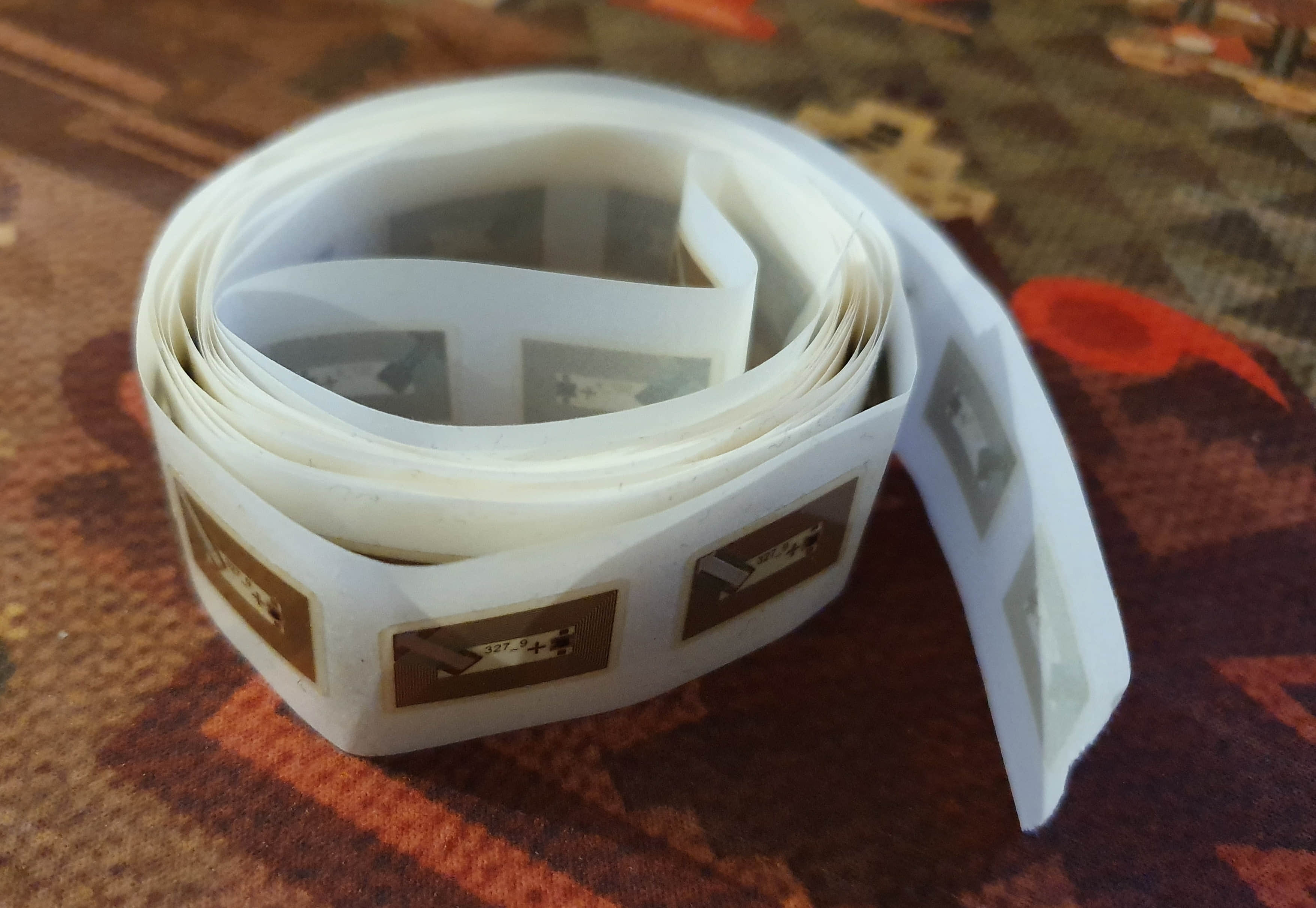 我选择的是型号为 NTAG213 的 NFC 芯片,只有不到 2 厘米的长宽,144 字节的容量(支持读写),非常适合我们用来制作自动化标签。