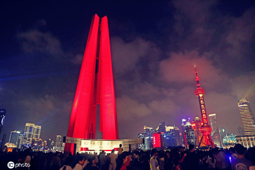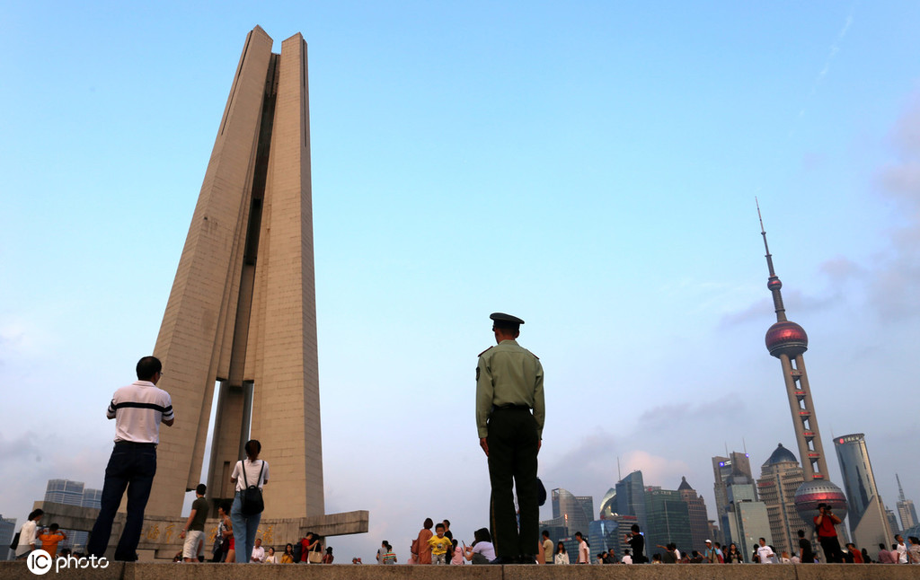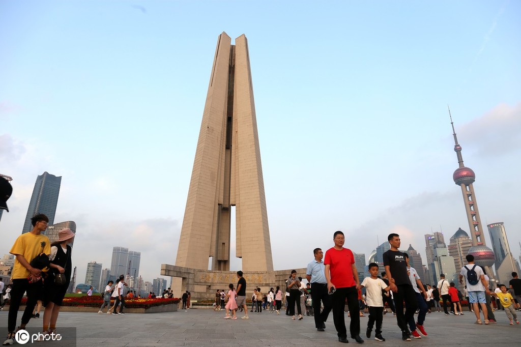 2019年10月4日,上海,国庆假日上海地标人民英雄纪念塔吸引众多市民游客,位于黄浦江、苏州河口的上海市人民英雄纪念塔于1994年5月27日上海解放45周年纪念日建成开放,是外滩黄浦公园内最为重要的一处历史纪念性建筑物,与浦东陆家嘴东方明珠和浦西万国建筑群美景遥相辉映,外滩历史纪念馆也建于此处,是上海的重要爱国主义教育基地。