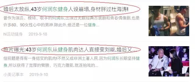 网上一搜更是不得了,到处掀起一股惋惜风,各种宣传说何润东是因为婚后太过放纵,而导致了健身人设崩塌,变得又胖又秃。