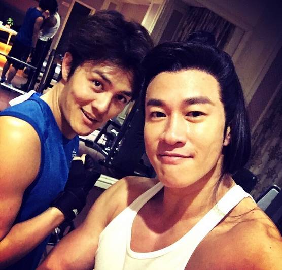 拍戏忙碌的时候也不忘抽空去健身,瞧这派头古装的发型还没卸呢!