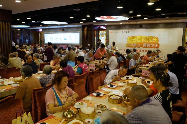 南都讯 记者李春花 10月7日是传统重阳节日,恰逢新中国成立70周年节庆,广州市志愿者协会联合广东点都德餐饮管理有限公司举办敬老百叟宴活动,邀请100名70岁以上社区空巢、孤寡和困难长者齐聚点都德越秀中路店,叹早茶、尝点心、赏粤曲、聊茶楼文化……让他们感受到来自社会的关爱,同时也共贺新中国70岁生日。