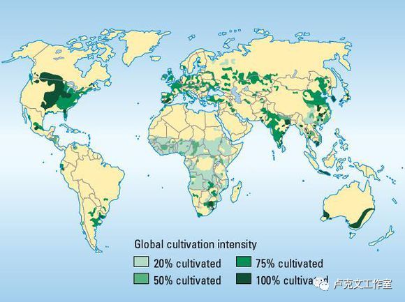 世界耕地图,颜色越深土地越好,美国有世界上最好的耕地