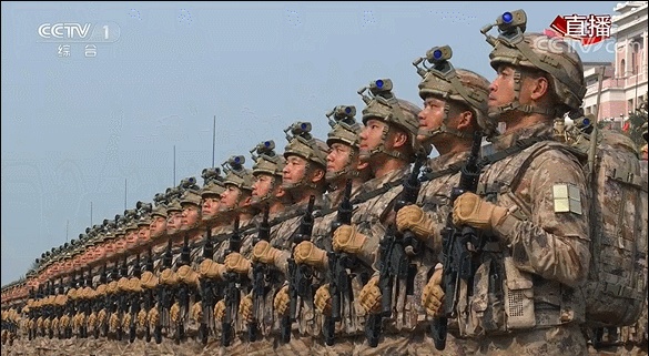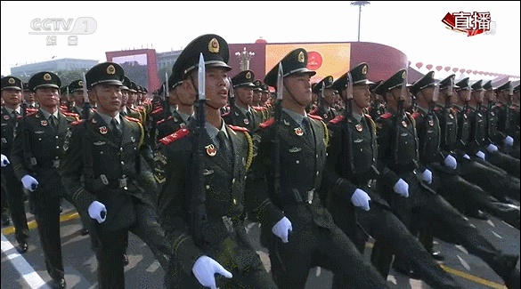 随后,盛大的阅兵式开始。此次阅兵,编15个徒步方队、32个装备方队、12个空中梯队,总规模约1.5万人,各型飞机160余架、装备580台(套),他们从天安门前豪迈通过,接受祖国和人民的检阅。