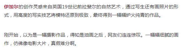 2.超写实主义是一种在写实主义基础上发展的具象表现主义,与抽象的表现主义等相反,主张将客观写实做到极致;