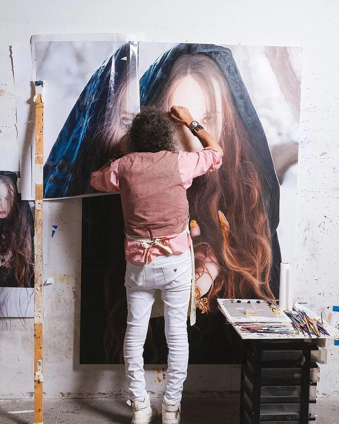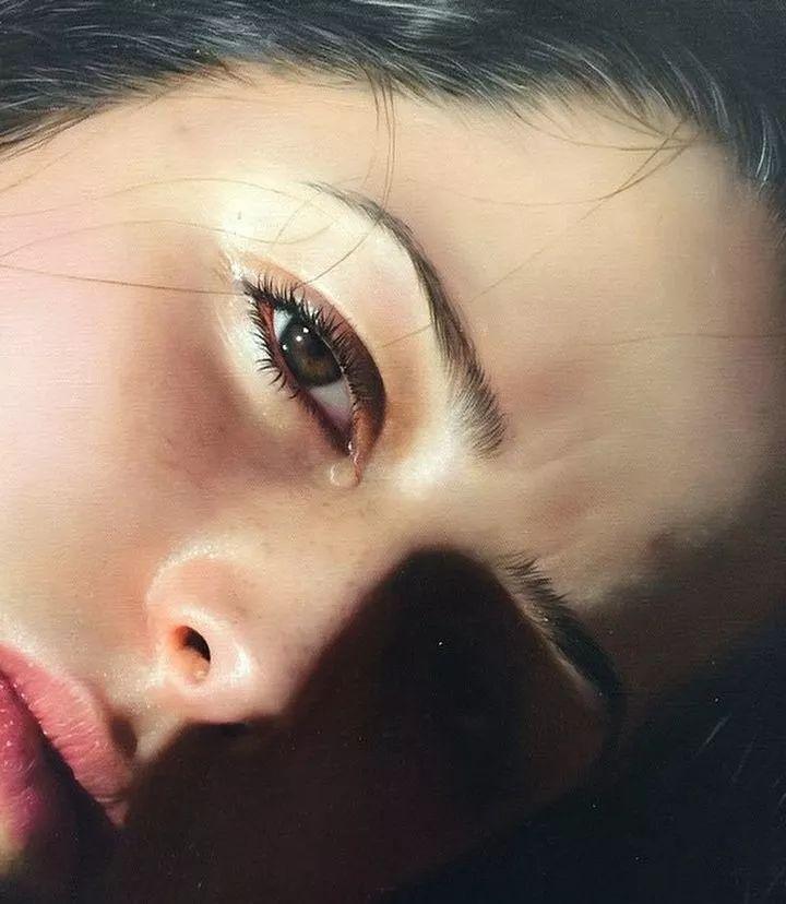拉大看细节,眼睛若隐若现,还是能看出笔触痕迹