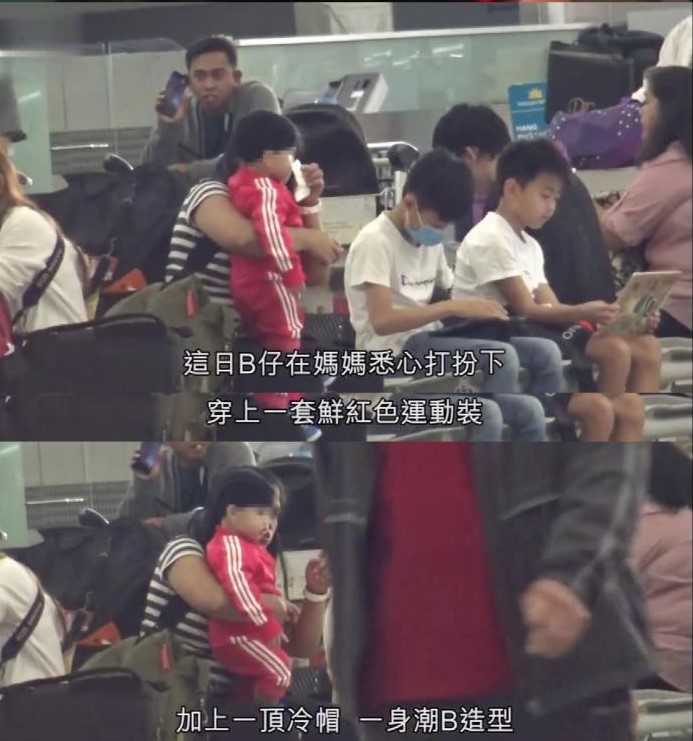 当天Marcus在妈妈的悉心打扮之下,穿上一套鲜红色的运动装,搭配一顶小帽子,非常的潮。