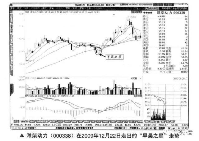 ——这6个都是星形态,说明多、空双方僵持不下,失去了方向感,但在连续涨、跌势的末端,则往往意味着情况不妙了。