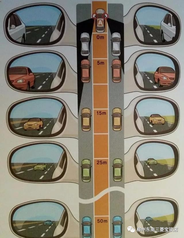 老司机常说,超车、变道或刹车时要先通过后视镜观察一下路况,新手司机要学会如何通过后视镜来判断与后车的车距。