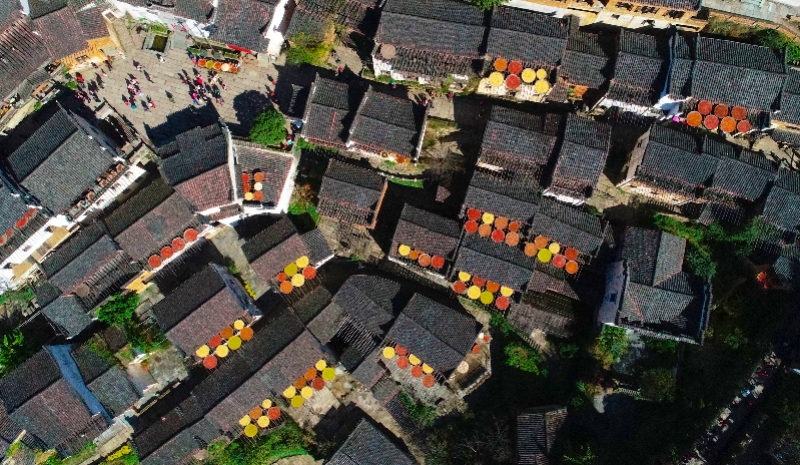 航拍篁岭村晒秋。新华社记者 胡晨欢 摄 推荐地:安徽歙县