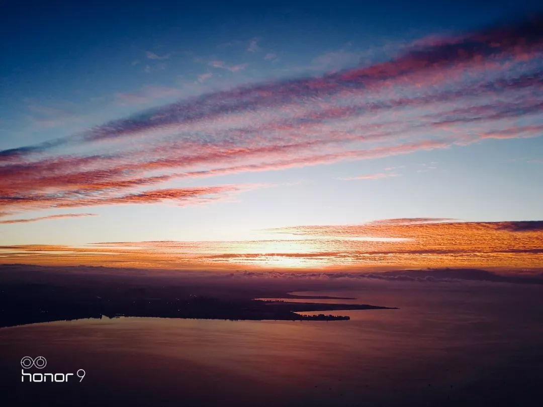 看着沉睡的昆明一点点苏醒,天边出现一抹绯红,周围的云层也染上金黄,温柔壮丽。太阳越过水面、越过云层,冉冉升起。不过短短十多分钟,却值得在脑海中留存一辈子。