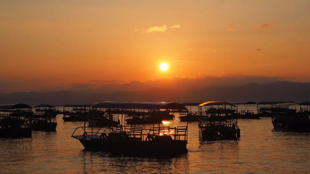 过了抚仙湖的雨季,秋冬大部分是晴天。在西岸靠近禄充风景区的环湖路边的观景台观日出最好,而在抚仙湖东岸沿线观日落,北岸新河口一带,既能看到日出也能看到日落。