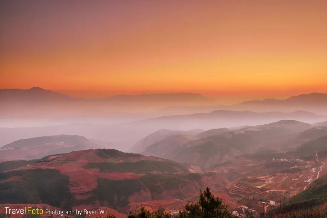 东川红土地向来被誉为“上帝的调色板”,日出日落自有一番致趣。在这里,你会不禁感叹,天地间竟有如此浓烈的色彩,绚丽斑斓。