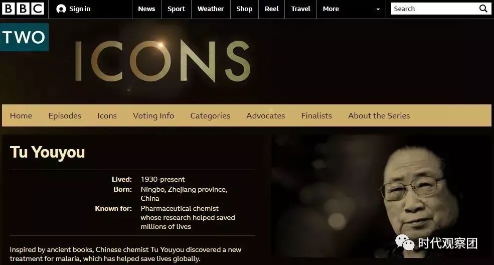 该活动为每一位候选人开辟了专门的介绍页面,在屠呦呦的页面上,BBC列出了她入选的理由: