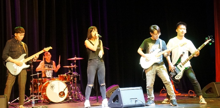 乐队演奏·《山海》,表演者:热音社/胡椒(UCSB)、Ray(UCI)、李牧聪(UC1)、徐长庚(UCSB), Ryan Sebold,热音社( Hot Sound Club)成立于2017年冬,是个图绕乐器、乐队和原创音乐而生的音乐社团,他们坚信年轻就要特立独行,并致力于玩最酷的音乐做最躁的现场