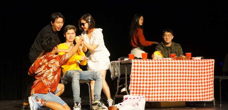 成立于2016,由中国留学生发起成立的南加州大学唯一致力于编排演出中文话剧、传播中文戏剧学生艺术社团“五号门剧社”(Gate Five Chinese Theater),紧持每学期完成一部戏剧作品。在当天的晚会中演出的小品《心机的信号》,创作取材留学生日常生活,收获全场笑声阵阵。