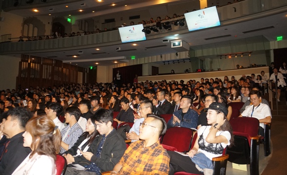 美西南学联创始成员、晚会艺术总监孙一村在致辞时介绍了美西南成立17年来走过的历程、以及当年美西南学联第一次中秋国庆晚会在南加州大学这个礼堂演出的历史。今年的演出筹备时间三个月,来自南加州地区各大学府的留学生演职人员近200人。晚会当天还有驾车七个小时来自亚利桑那州大学的学联代表。