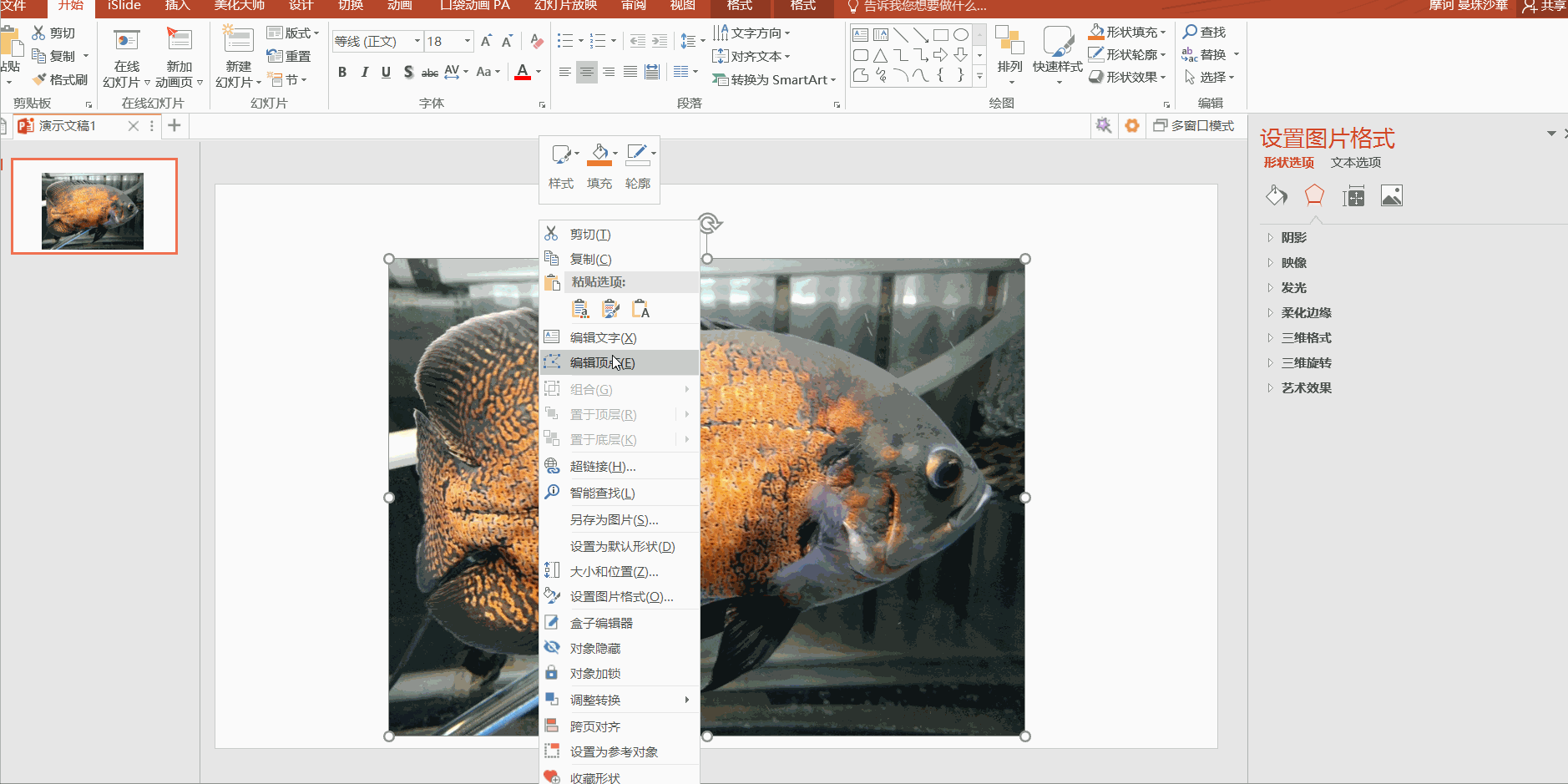 现在我们再选中图片,右键,会发现有了编辑顶点的功能选项,也就是说图片已经可以进行编辑顶点操作了。