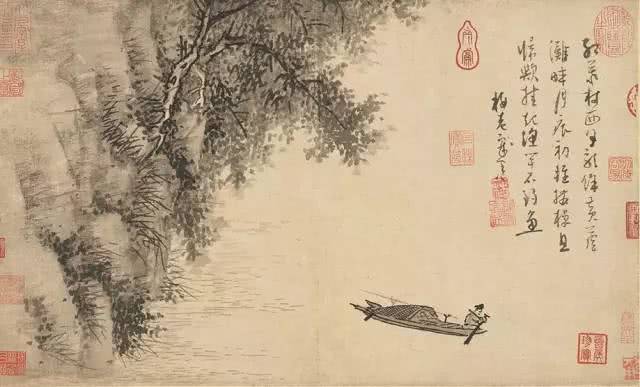 就好像南宋马远的那副《寒江独钓图》,画中只有一人一舟,却让人有烟波浩渺之感。 这不就是所谓的“此处无物胜有物”吗?书法中也常常讲究留白,在虚实之间穿插,不能满,满了则乱。也不可太小,否则太过于空旷,留白是一种格局与智慧,其中尽显美得韵味。