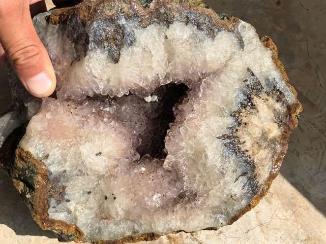周先生还说:“水晶洞冲洗过后看起来比较透亮,但是仔细观察,就能发现内里的杂质”。“我大多数情况下找到的都是一些品质比较差的玛瑙和水晶洞,除非找到品质尚好的才会自己留下收藏。”