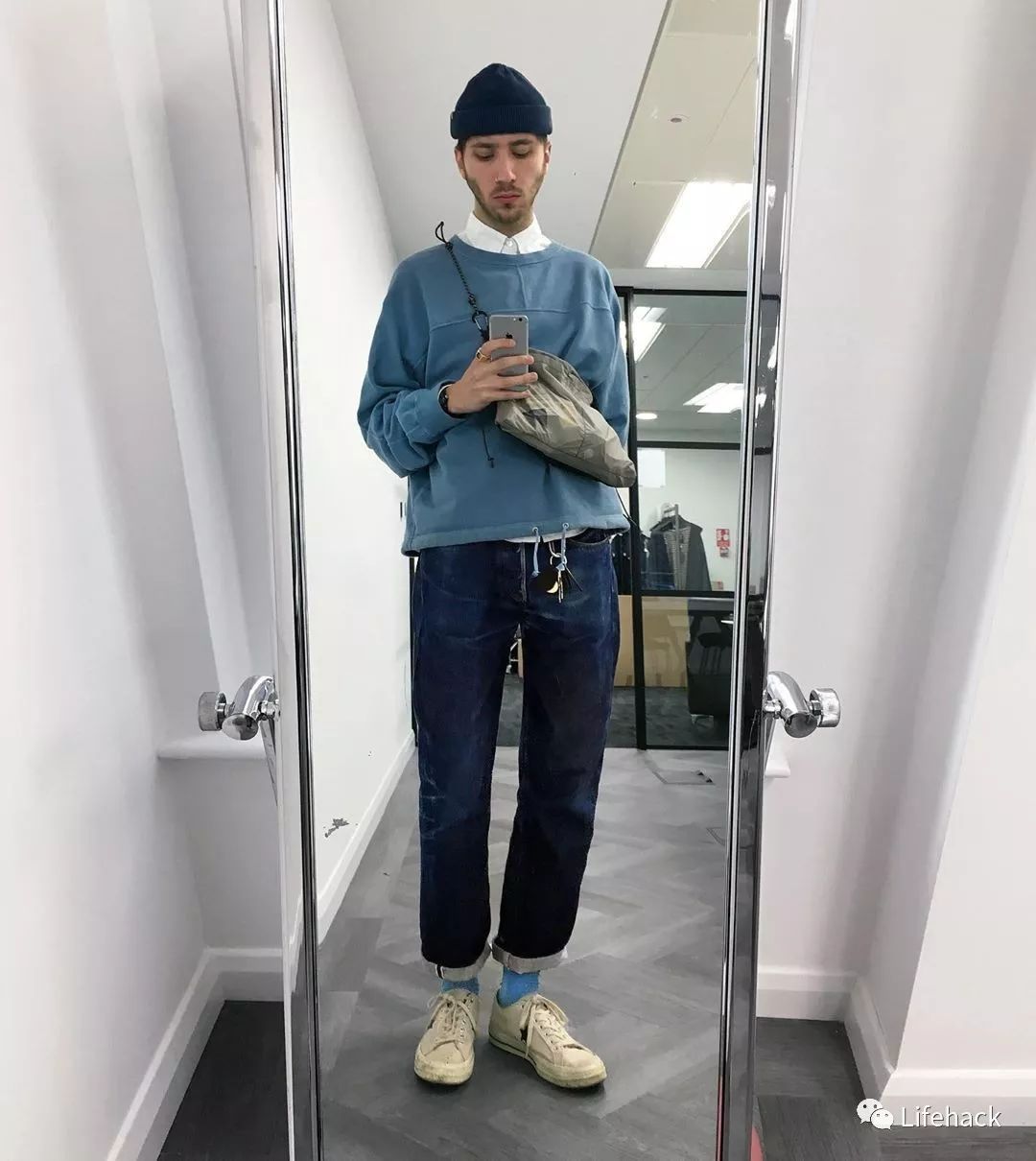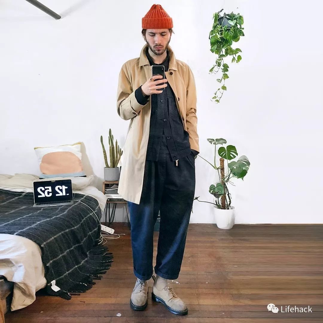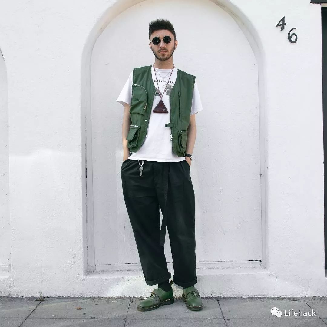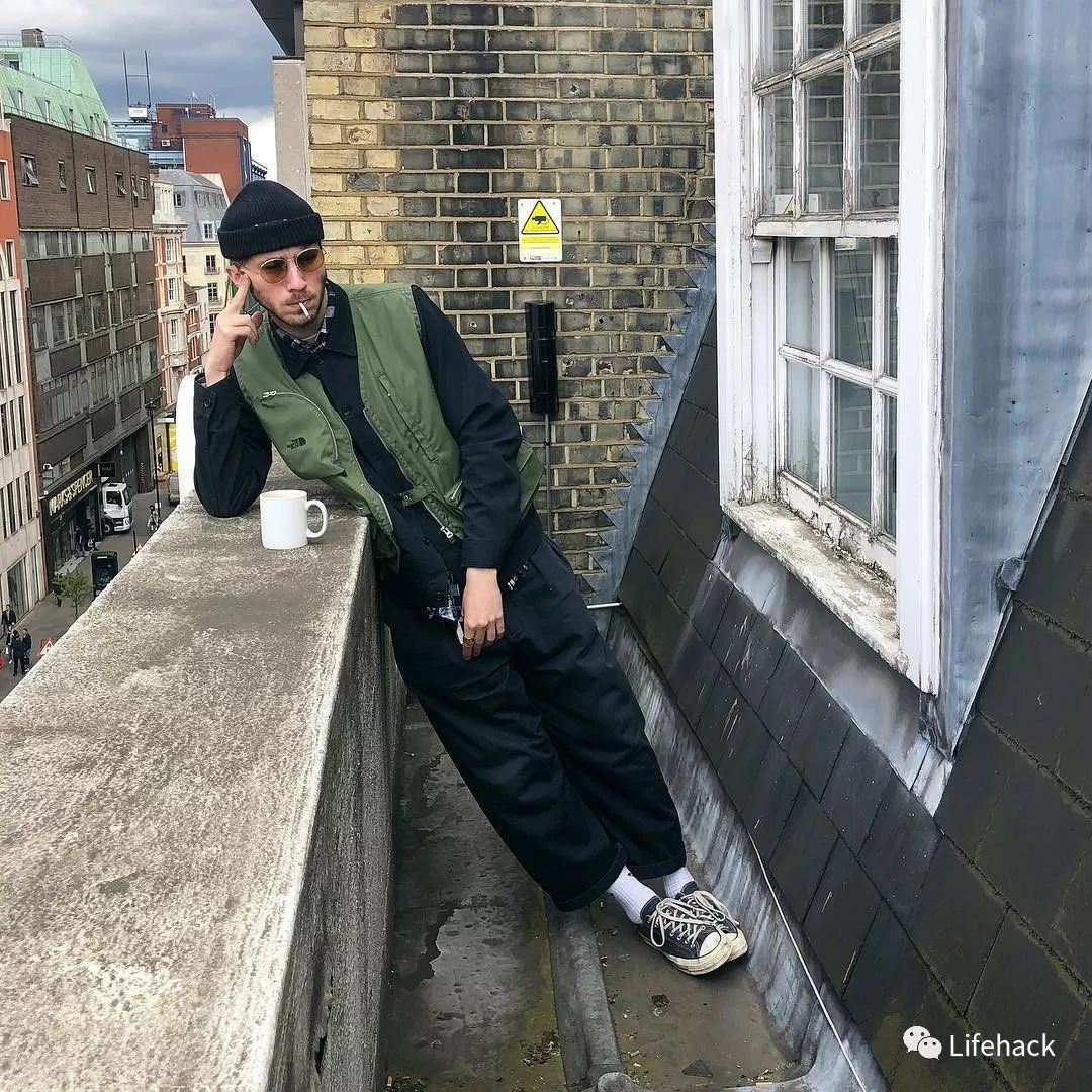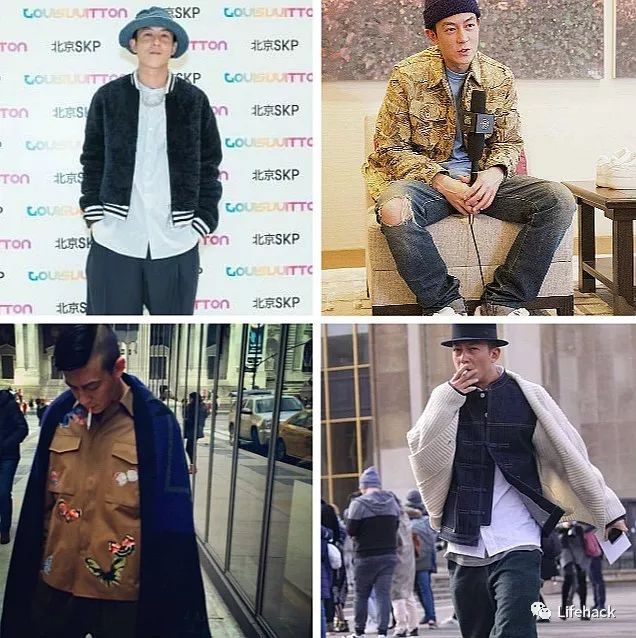 他的衣品跟大家有所不同,有点颓废,又有点雅痞,棉线帽、工装裤、混搭、撞色,普通人都说丑,但潮人们却又在争相模仿!