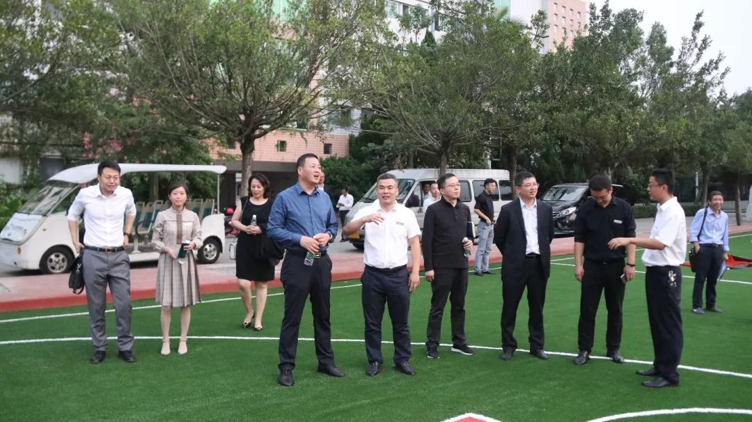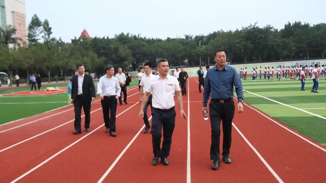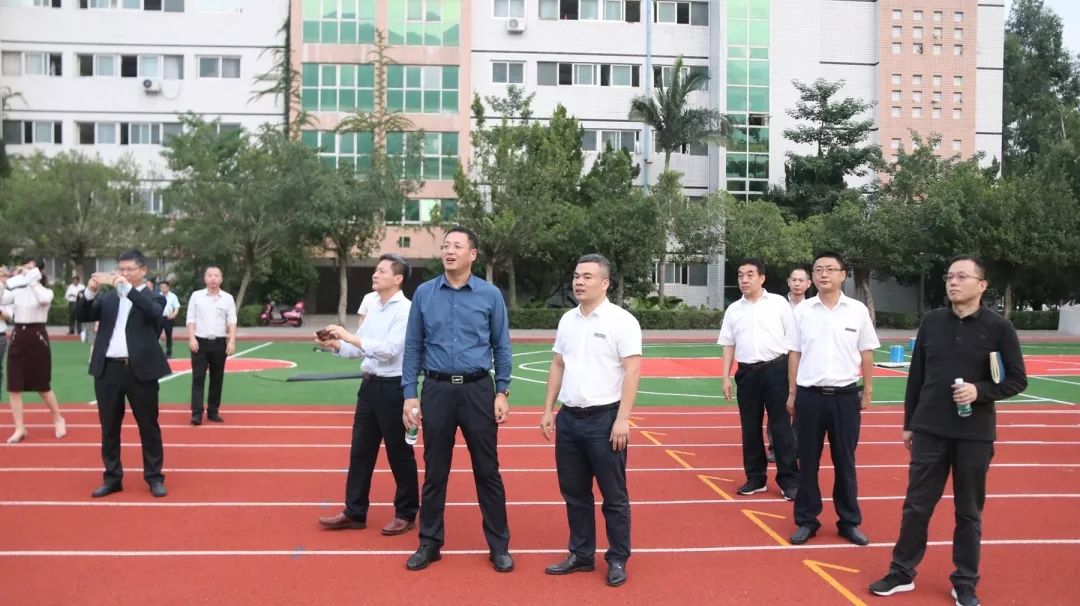 随后,首控领导一行来到初中部,参观了初中部运动场、班级教室及学部文化墙,对运动场的建设规划给予了赞扬,认为高规格的运动场为学校体育活动开展提供了保障,很有价值。