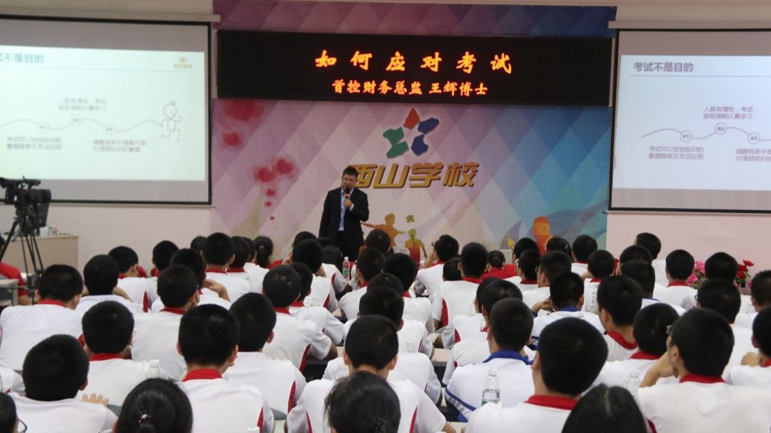 下午2时40分,首控集团财务总监王辉博士为西山学子带来《如何应对考试》的专题讲座,分享自己学习经验和考试技巧,帮助学生学习与备考。