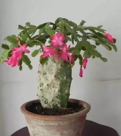养过蟹爪兰的朋友都应该知道,它的根系是非常脆弱的,养护不注意就很容易造成烂根,夏季又怕晒死,但是如果你将蟹爪兰嫁接到仙人掌上面之后,只要养好仙人掌,就相当于养好蟹爪兰,开花也更简单。